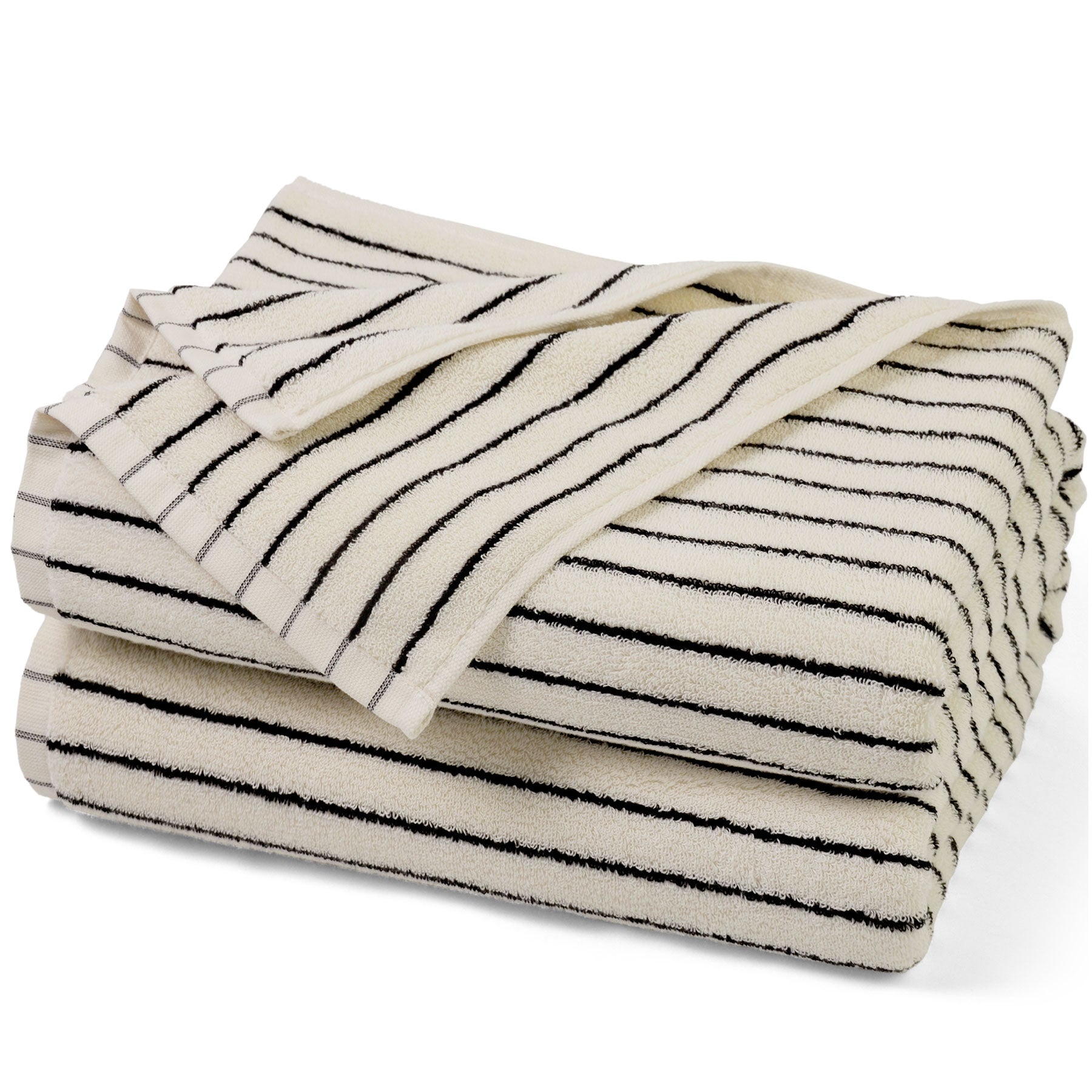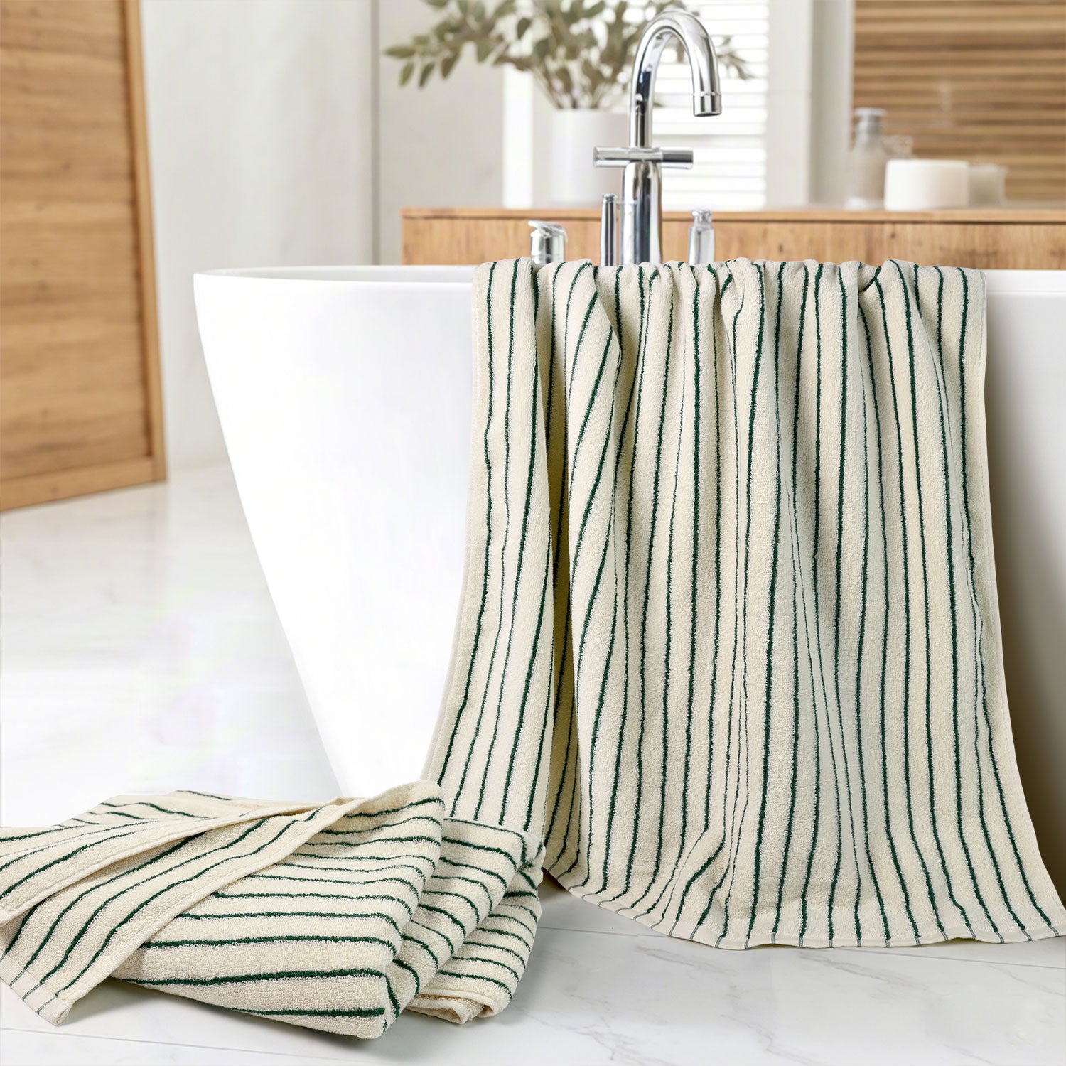 - Farmhouse or Modern: Bring timeless charm to your bathroom, guest room, or poolside setup with black and ivory cabana stripe bath towels, suits rustic, minimalist, or farmhouse bathroom styles