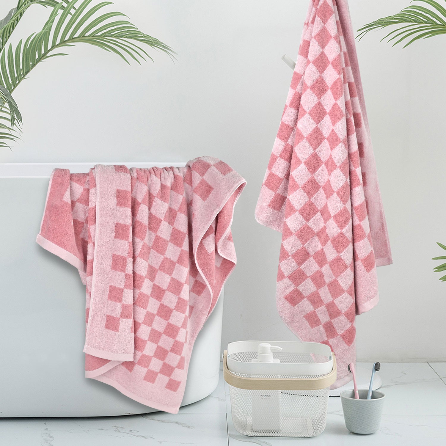 - Charming Design: Adorned with an elegant pink checkered pattern, these cute bathroom towel set complement any bathroom decor