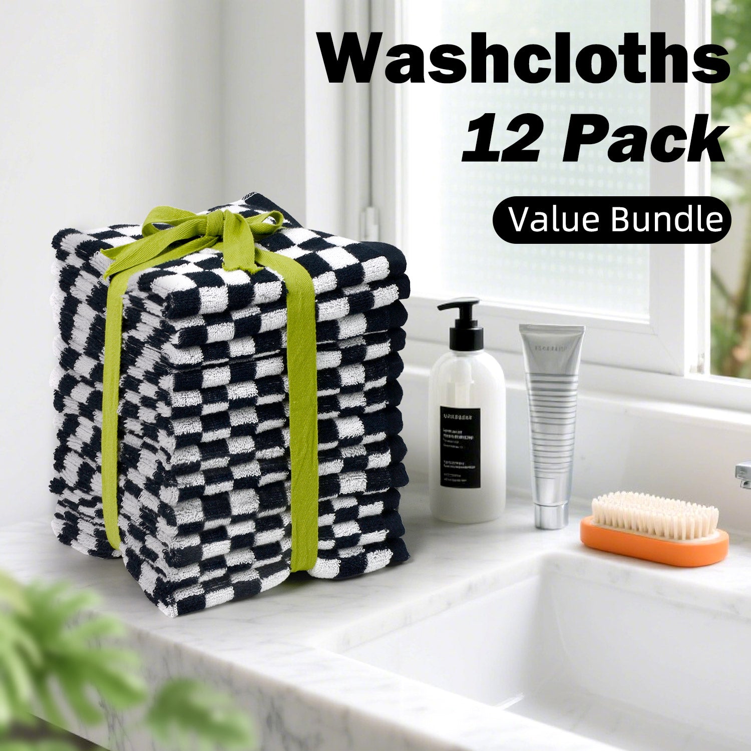 Jacquotha Washcloths 12 Pack Checkered - Wash Cloths for Showering (13"x13"), Multi-Purpose Bathroom Face Cloths, Soft and Cute